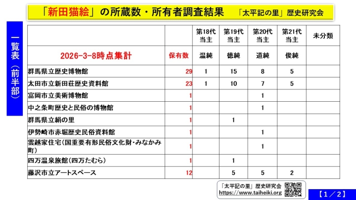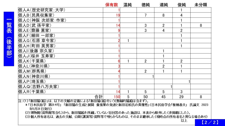新田猫絵所有者と種類等の調査結果 【第1弾公表】