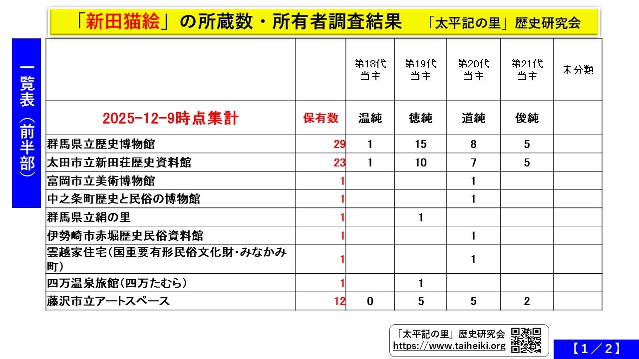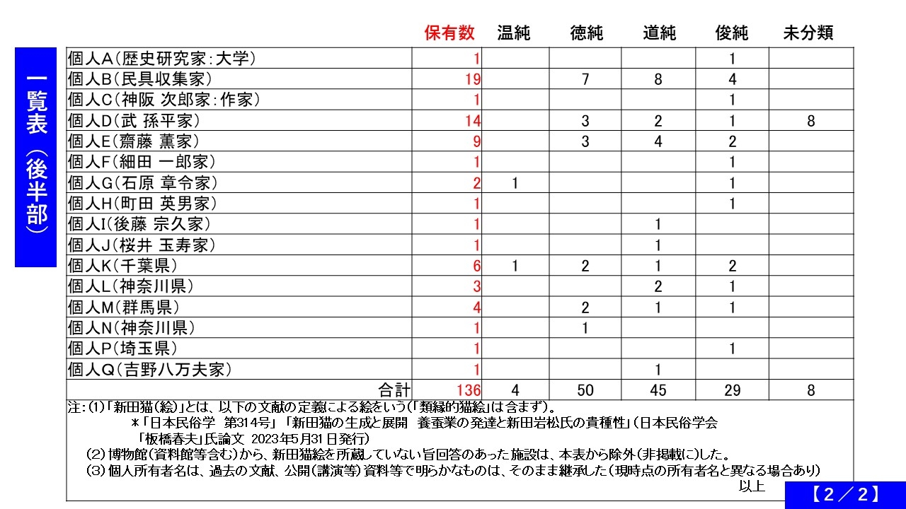 追加調査】新田猫絵所有者と種類等について